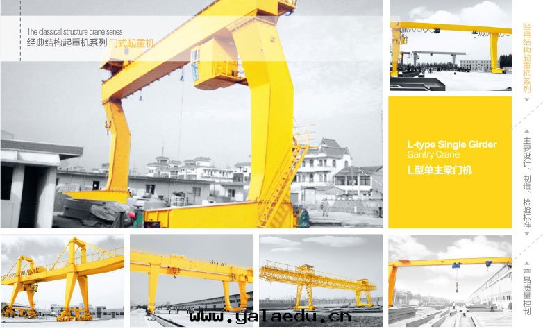 1、 L型單主(zhǔ)梁(liáng)吊钩門(mén)式起(qǐ)重(zhòng)機(jī)适用(yòng)于(yú)露(lù)天(tiān)貨场(chǎng)、铁(tiě)路(lù)沿線(xiàn)進(jìn)行一(yī)般的(de)裝(zhuāng)卸員裝(zhuāng)及(jí)起(qǐ)重(zhòng)搬運工作(zuò)。